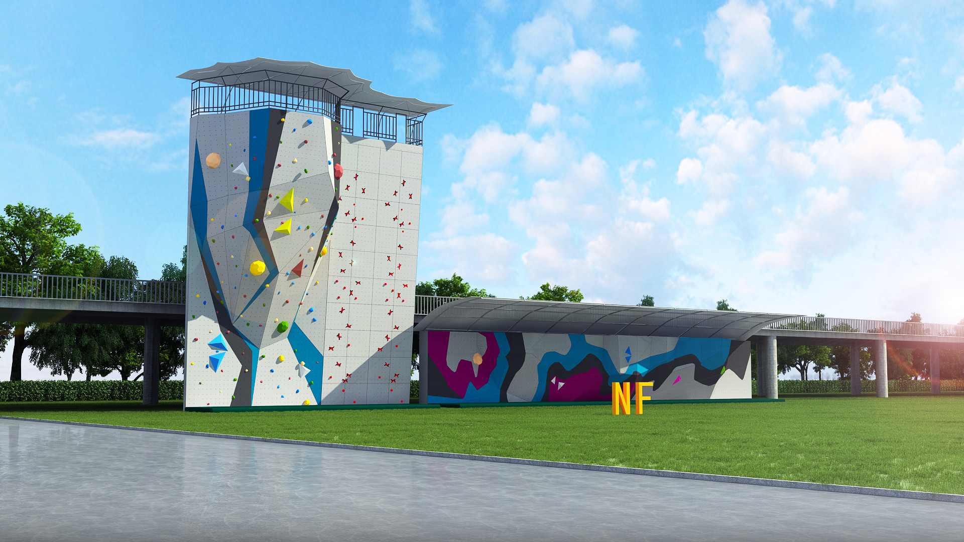 Le nostre pareti rampicanti all'aperto vengono in varie progettazioni, dalle pareti bouldering alle pareti del multi-passo. Inoltre offriamo una gamma di progettiamo di per soddisfare le esigenze del vostro parco particolare di avventura.